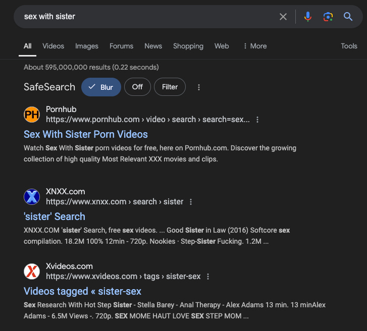 If folks want to learn more about the incest crisis on the internet, all they have to do is plug a number of incest-related queries into their preferred search engine — to name a few: Google, Bing, or Yahoo. Numerous Search Engine Results Pages (SERPs) will then appear to tell users what do in the form of encouraging Reddit and Quora Chatrooms, incest-themed pornography and child sexual abuse material (CSAM), breaking news about people attempting to legalize the issue, and outdated medical research from the 1980’s that still question whether or not children can consent to sexual activity, as well as if they were the ones responsible for the violence.